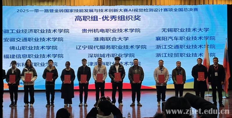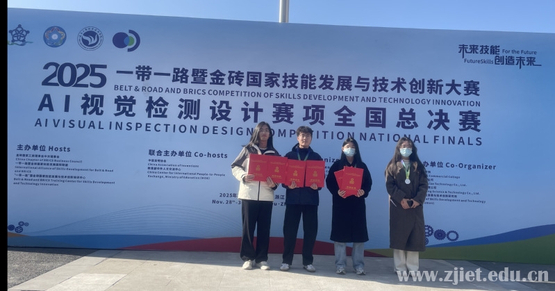 11月28—30日,2025年“一带一路”暨金砖国家技能发展与技术创新大赛“AI视觉检测设计”全国总决赛在义乌工商职业技术学院圆满落幕。我校师生团队凭借扎实功底,在激烈角逐中脱颖而出,斩获高职组全国二等奖。