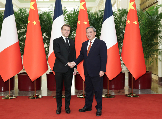 李强表示,近年来,在两国元首战略引领下,中法关系与合作取得很多新的进展和成果。今天上午,习近平主席同总统先生举行会晤,为进一步深化两国关系指明了方向。中法同为全球主要经济体和联合国安理会常任理事国,保持密切战略沟通,开展协调有力行动,不仅有利于双方携手发展,也能为当今变乱交织的世界注入更多稳定性、确定性。中方愿同法方一道继续努力,赓续传统友谊,巩固政治互信,加强全方位合作,推动中法全面战略伙伴关系迈上新台阶。