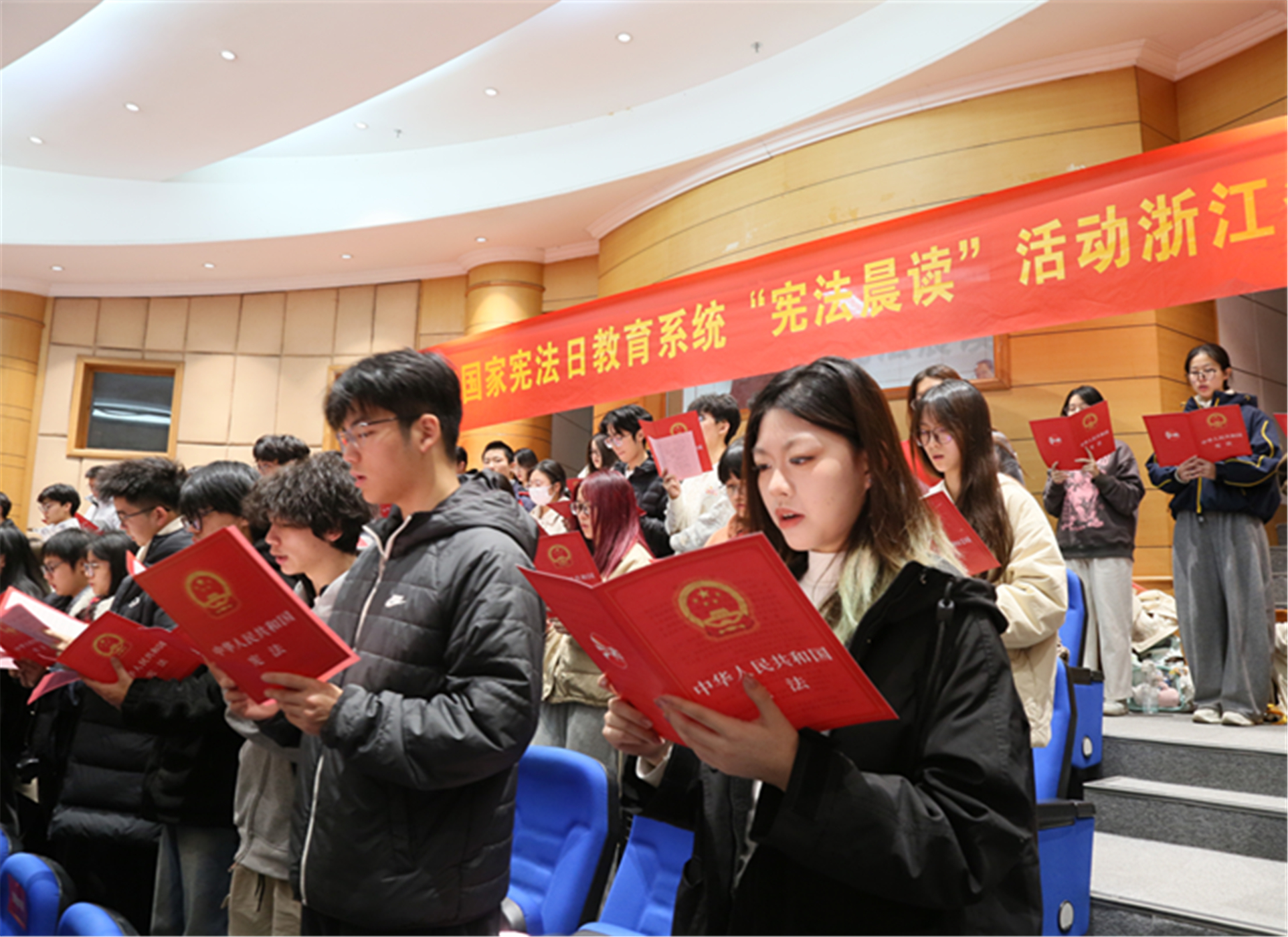 2025年12月4日是第十二个“国家宪法日”。上午,全国教育系统“宪法晨读”浙江省分会场活动在浙江工业大学举行,通过网络直播连线教育部北京主会场同步参与。