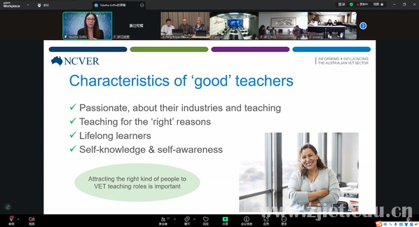 12月2日—9日,由浙江省教育厅、西澳州培训和劳动力发展厅指导,学校和西澳州南部城区TAFE学院、北部城区TAFE学院共同承办的浙江-西澳职业教育联盟第四期教师教学能力提升工作坊活动以线上线下相结合的方式成功举办。来自浙江省34所高校的260余位教师齐聚云端,围绕职业学生参与度、标准更新与实践应用等核心议题,参与了为期两场的专题培训与深度研讨。澳大利亚国家职业教育研究中心团队负责人塔巴莎・格里芬,南部城区TAFE学院高级讲师弗格森、质量教学和学习顾问亨利·陈,北部城区TAFE学院高级讲师黛布拉、教学质量与发展讲师谭·阮等西澳职教专家担任本期培训主讲嘉宾。