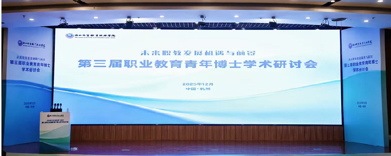 2025年12月6日,浙江经贸职业技术学院第三届职业教育青年博士研讨会在学校会议中心顺利举办。《职教论坛》主编肖称萍、《中国职业技术教育》副主编李术蕊、原《光明日报》教育部职教版高教版主编练玉春,学校党委书记刘秀丽出席活动。学校领导班子其他成员,全体中层干部,部分专任教师,相关行政人员,以及来自国内多所高校的博士生和部分兄弟院校同仁参加了学术研讨活动。