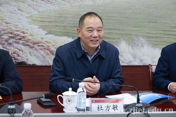 杜方敏对学校的热情接待与经验分享表示感谢,并简要介绍了广东科贸职业学院的办学情况。他表示,浙江经贸学院作为国家“双高计划”专业群建设单位,在院校两级管理机制创新、财经商贸类专业群建设、高素质技术技能人才培养等方面经验丰富,形成了一批有影响力的成果。期待两校进一步加强沟通协作,共同探索职业教育创新发展路径,为区域社会经济发展贡献职教力量。