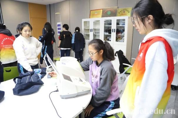 在职业体验环节中,围绕三类典型职业岗位,量身设置“客户体格测量”“亚硝酸盐快速检测”“功能性饼干制作” 三项实践项目。在专业教师现场指导下,同学们积极参与、亲手实践,沉浸式体验真实工作流程,切实体会专业技术的实际应用价值。