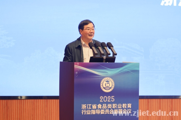 12月19日上午,浙江省食品类职业教育行业指导委员会首届会议在我校顺利召开。浙江省市场监督管理局二级巡视员朱小都,全国食品工业职业教育教学指导委员会主任委员毛建卫,浙江省市场监督管理局食品安全抽检监测处处长王群,浙江省食品类职业教育行业指导委员会副主任委员、学校副校长林锋出席会议。本次会议以“深化产教融合、服务食品安全、赋能人才培养”为主题,汇聚政府部门、行业企业、高等院校、职业院校、科研机构等多方代表,共同研讨浙江省食品类职业教育的发展路径与创新实践。会议由学校党委委员、副校长程余伟主持。