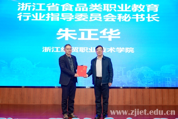 会上,举行了浙江省食品类职业教育行业指导委员会委员聘书颁发仪式。来自全省市场监管系统、高等院校、职业院校、科研机构、行业协会、龙头企业的三十多位专家获聘为首届委员,我校食品健康学院院长朱正华当选行指委秘书长。此举标志着浙江省食品类职业教育协同育人机制进一步健全,行业指导力量实现实质性增强。