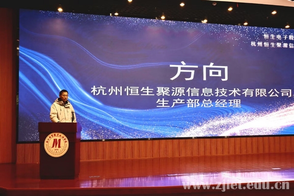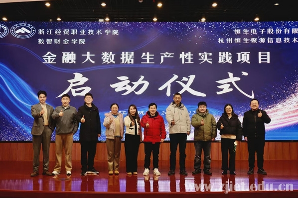 为进一步深化产教融合与校企合作,培养适应金融行业数字化转型需求的高素质技能人才,12月26日,数智财金学院金融大数据生产性实践项目启动仪式在学校会议中心二楼举行。杭州恒生聚源信息技术有限公司生产部总经理方向、生产部团队主管赵志会,恒生电子股份有限公司校企合作项目负责人黄善康,以及数智财金学院负责人和财富管理专业的全体师生参加了启动仪式。
