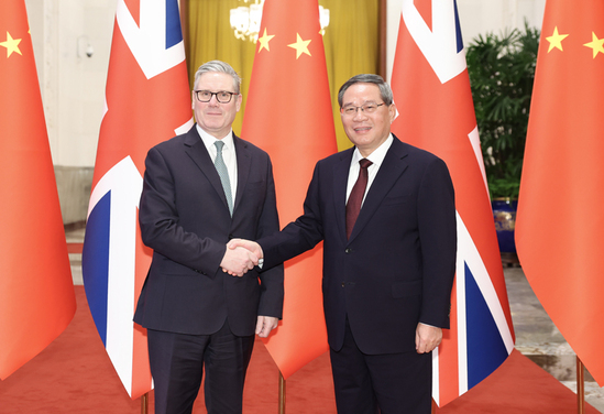 1月29日下午,国务院总理李强在北京人民大会堂同来华进行正式访问的英国首相斯塔默举行会谈。