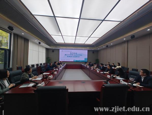 王振洪对我校调研组一行到访表示热烈欢迎,并详细介绍了金职大办学治校的特色做法与成效。他表示,浙江经贸职业技术学院在商贸类人才培养、校企协同育人、服务区域经济社会发展等方面特色鲜明、社会认可度高。他希望,两校充分发挥各自优势,持续深化交流、互学互鉴、共享共赢,共同探索新时代职业教育高质量发展的有效路径。