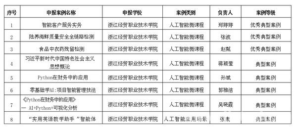 近日,教育部职业院校信息化教学指导委员会发布了人工智能应用典型案例遴选结果,共遴选出人工智能微课程等三类典型案例570个。我校共8个案例入选,其中3个人工智能微课程优秀典型案例,4个人工智能微课程典型案例,1个人工智能应用场景典型案例,较好展现了我校在人工智能赋能教育教学改革领域的成果成效。